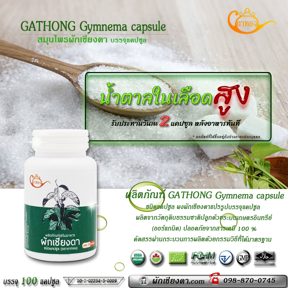 ล๊อตใหม่สมุนไพรผักเชียงดา ชนิดแคปซูล ออร์แกนิค100% บรรจุ 100 แคปซูล 1 กระปุก