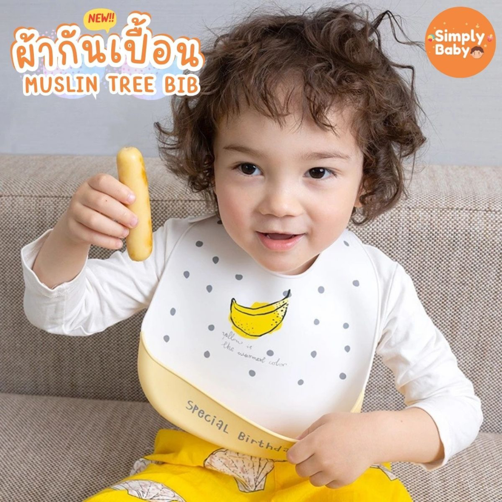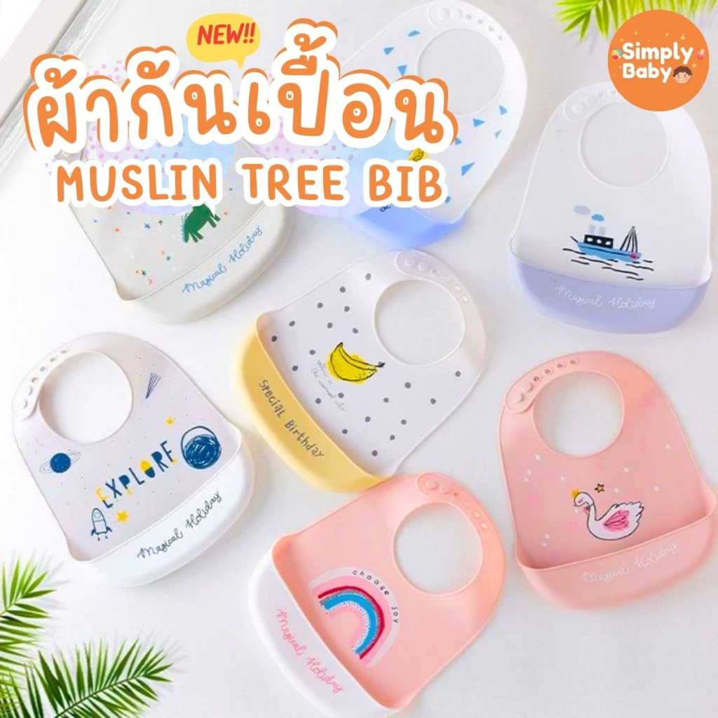 Simply Baby ผ้ากันเปื้อนเด็ก bib ซิลิโคน Food Grade Muslin tree Bib อ่อนโยนปลอดภัยกับลูกน้อย