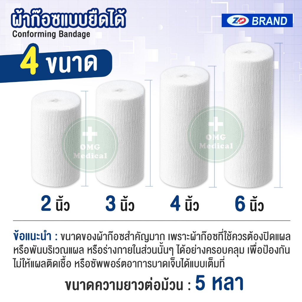 ผ้าก๊อซยืด ผ้าก๊อซพันแผล ZD conforming bandage เนื้อนุ่ม ซึมซับดี (บรรจุ 12 ม้วน/แพ็ค)