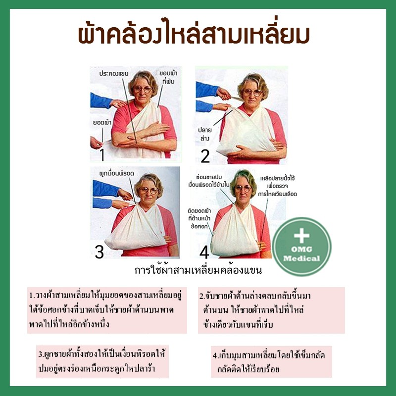 ผ้าพันแผลสามเหลี่ยม ยืดหยุ่น ทอบาง อุปกรณ์สำหรับปฐมพยาบาล กระดูกแขนหัก ลดอาการบาดเจ็บจากการเคลื่อไหว