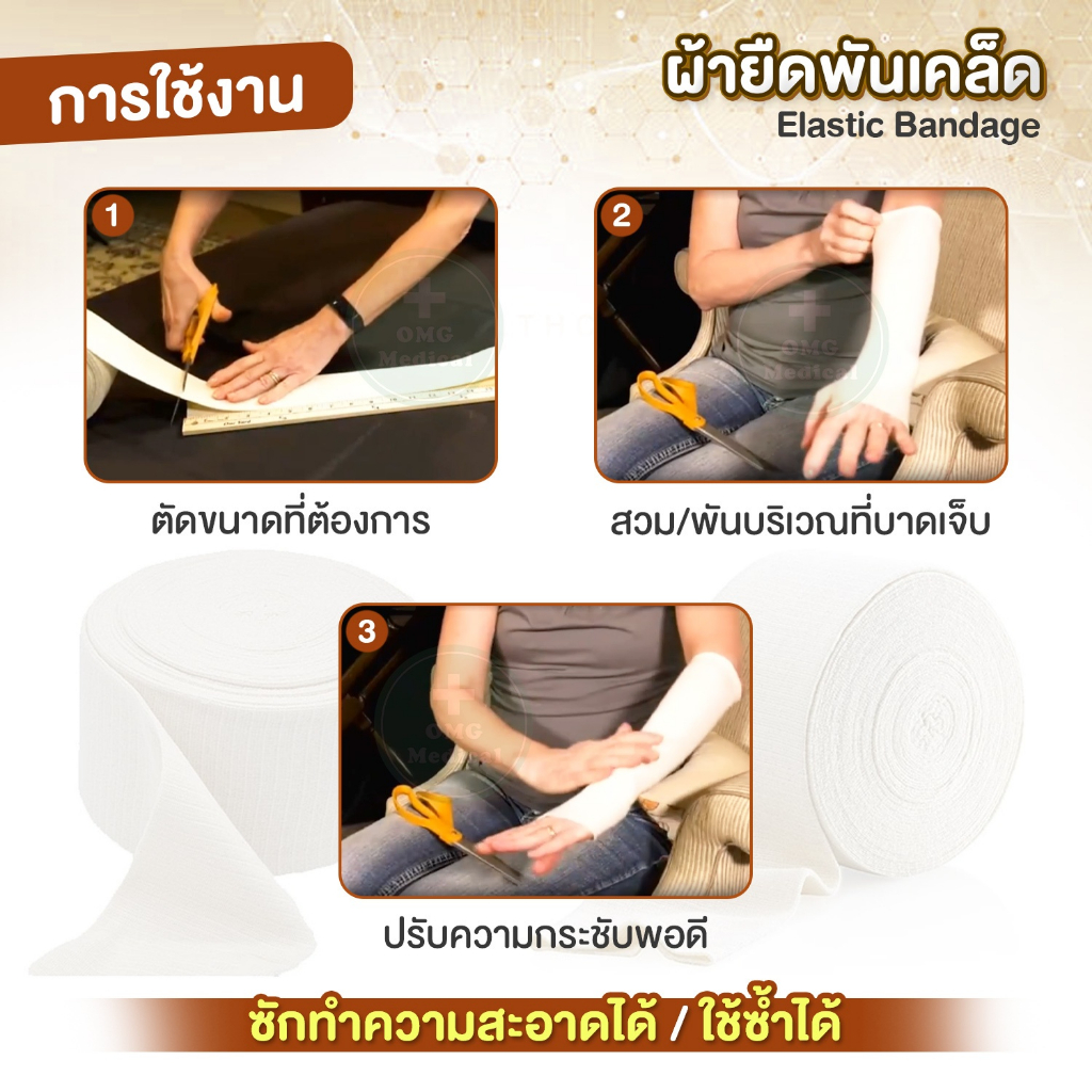 ผ้ายืดพันเคล็ด แบบสวม ตัดได้ Elastic Bandage ขนาด 2นิ้ว,3นิ้ว,4นิ้ว ยาว 5 หลา ผ้าล็อค ผ้าพันกล้ามเนื้อ กระชับ ยืดหยุ่น