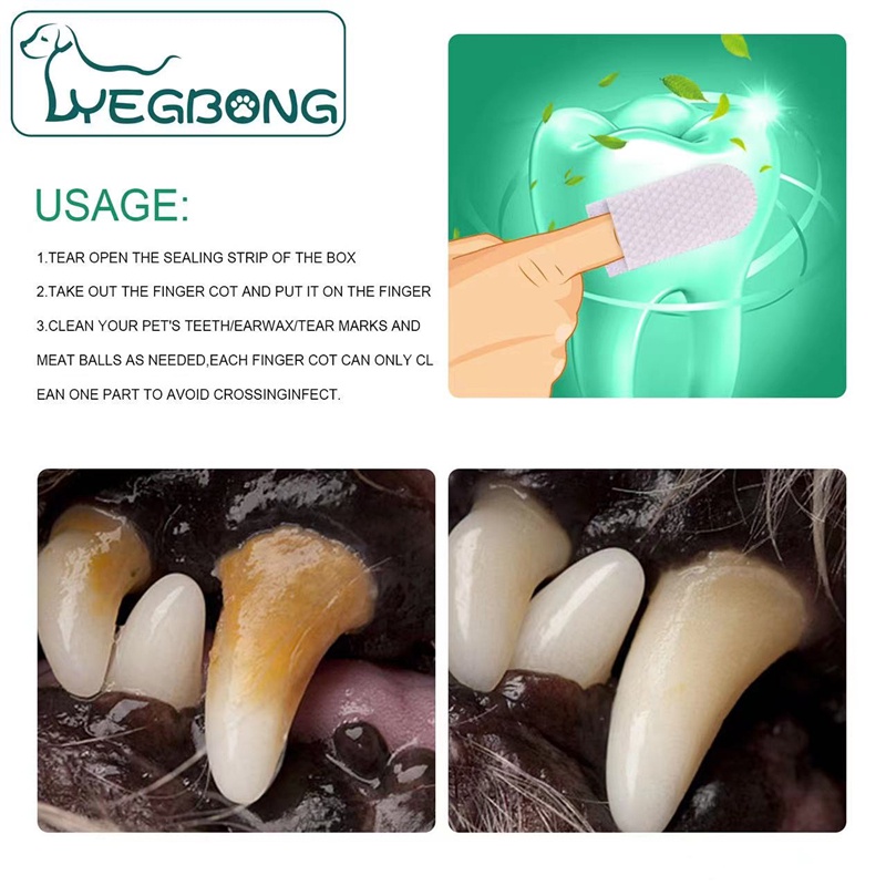 ผ้าเช็ดทำความสะอาดสัตว์เลี้ยง แปรงฟัน ขจัดกลิ่นปากในแมว สัตว์เลี้ยงแปรงฟัน ทิชชู่เปียกสำหรับทำความสะอาดฟัน20pcs