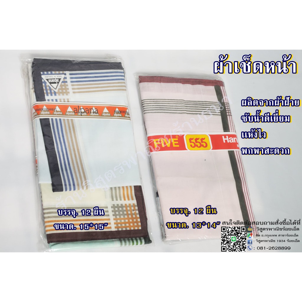 ผ้าเช็ดหน้าสี่เหลี่ยม ผ้าฝ้าย 100%