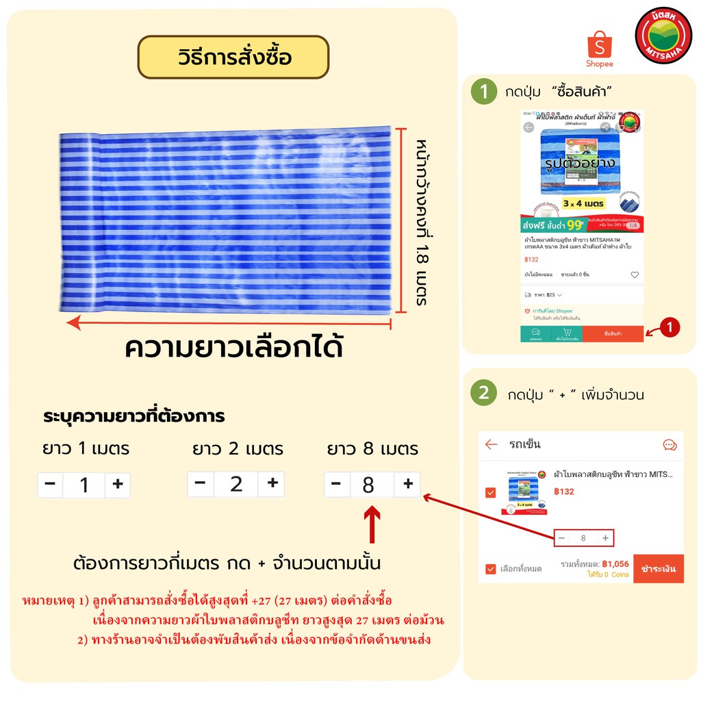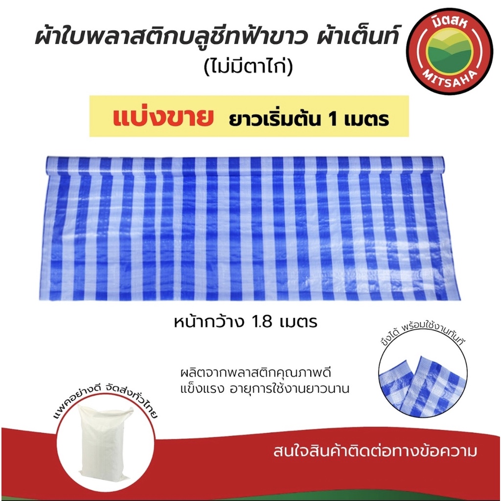 ผ้าใบพลาสติก บลูชีท ไม่มีตาไก่ หน้ากว้าง 1.8เมตร แบ่งขาย ยาวเริ่มต้น 1เมตร ฟ้าขาว ผ้าเต็นท์ ผ้าฟาง PE Tarpaulin มิตสห™️