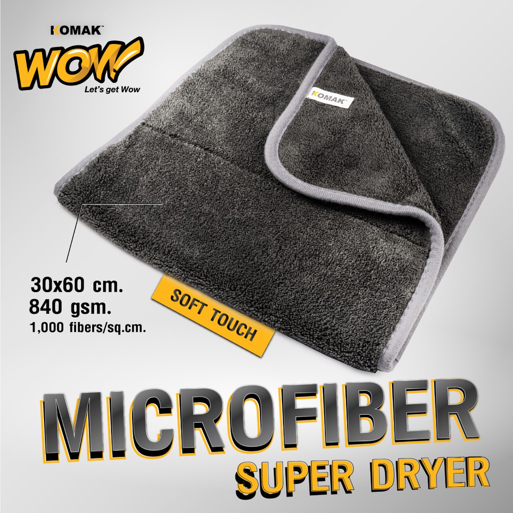 ผ้าไมโครไฟเบอร์ หนานุ่มพิเศษ 840แกรม WOW SUPER DRYER วาว ซูเปอร์ ดรายเออร์ ผ้าเช็ดแห้งหลังล้างรถ ซับน้ำดี