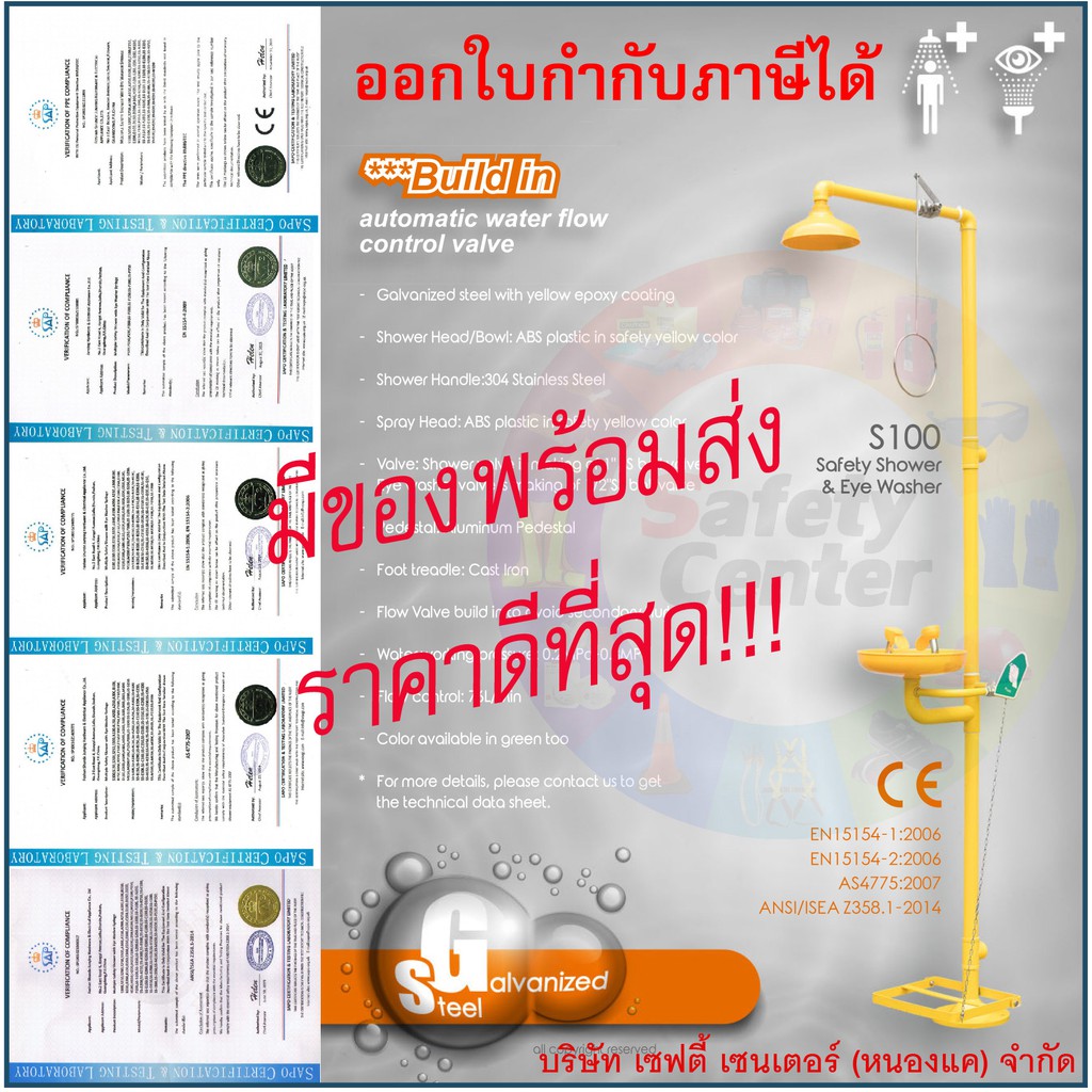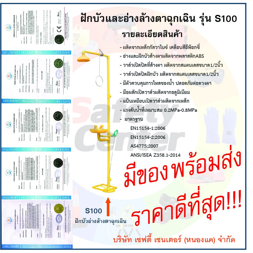 ฝักบัว และอ่างล้างตาฉุกเฉิน Safety Washer and Eye Washer