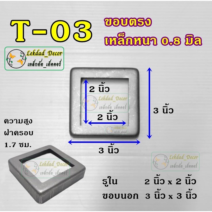 ฝาครอบฐานเสา ทรงสี่เหลี่ยม เหล็ก รั้ว ราวบันได เหล็กหนา 0.8มิล
