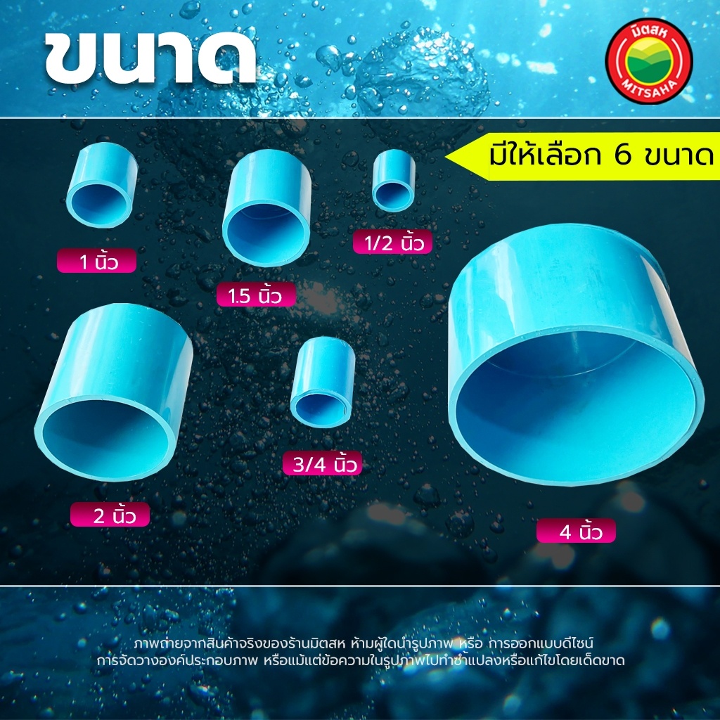 ฝาครอบพีวีซี ขนาด 2, 4 นิ้ว สีฟ้า อุปกรณ์ข้อต่อ PVC Cap สวม ครอบ อุด ปิด ปลาย ท่อ ประปา มิตสห Mitsaha
