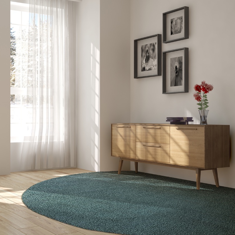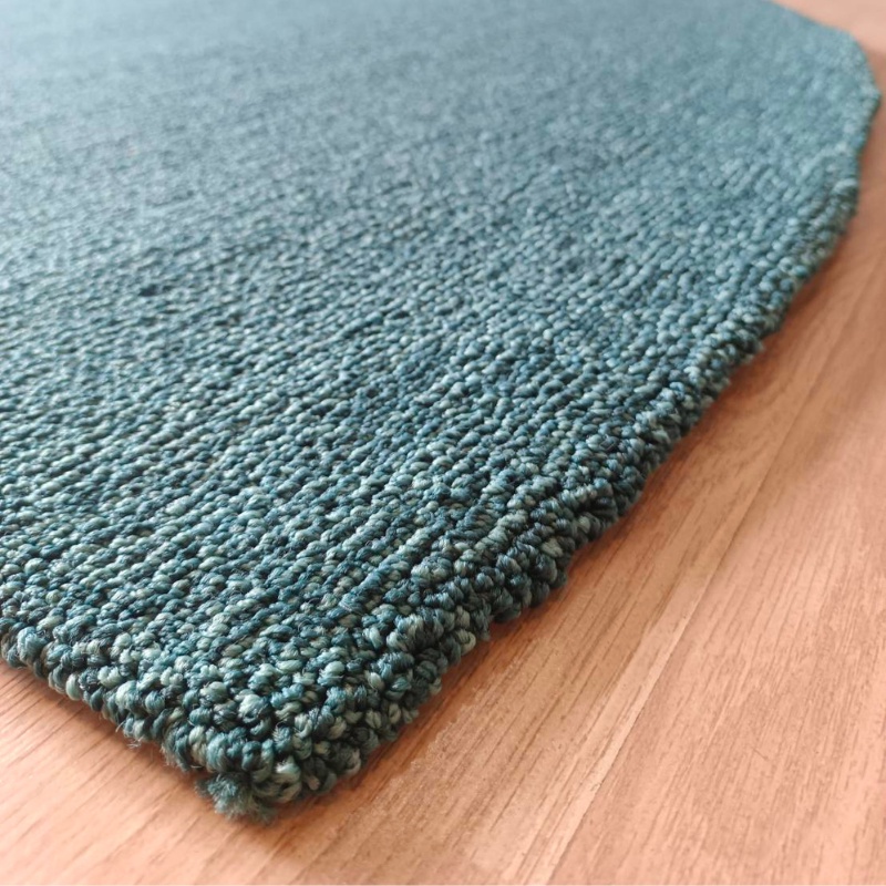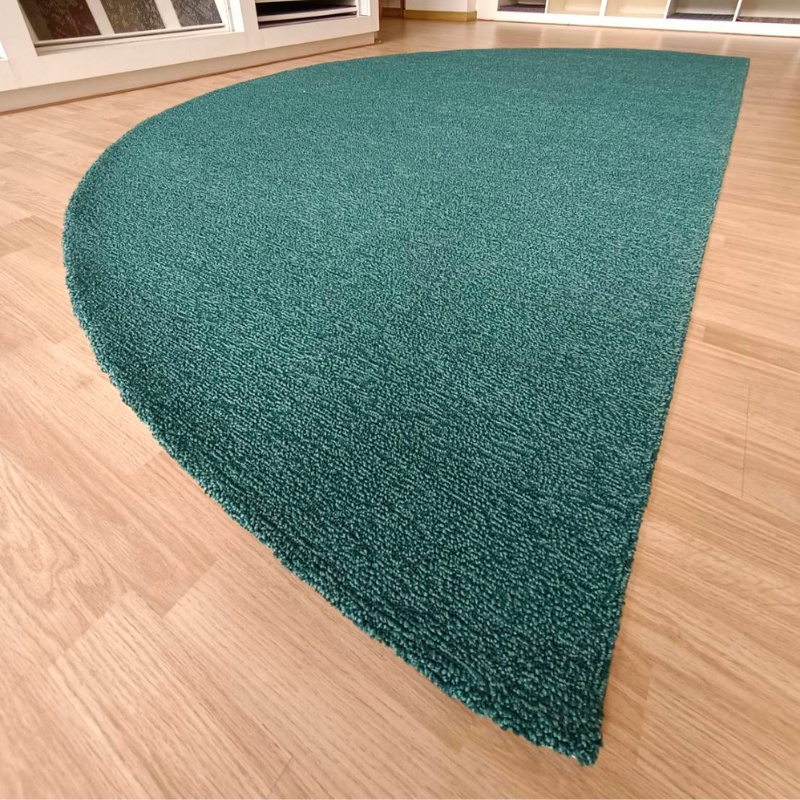 พรมทอมือ ไหมไนล่อน 4.50 ปอนด์ พรมแต่งบ้าน ทรงครึ่งวงกลม ขนาด 2.03 x 3.60 m สีฟ้าอมเขียว
