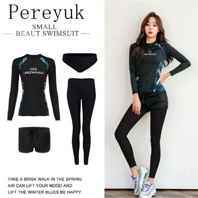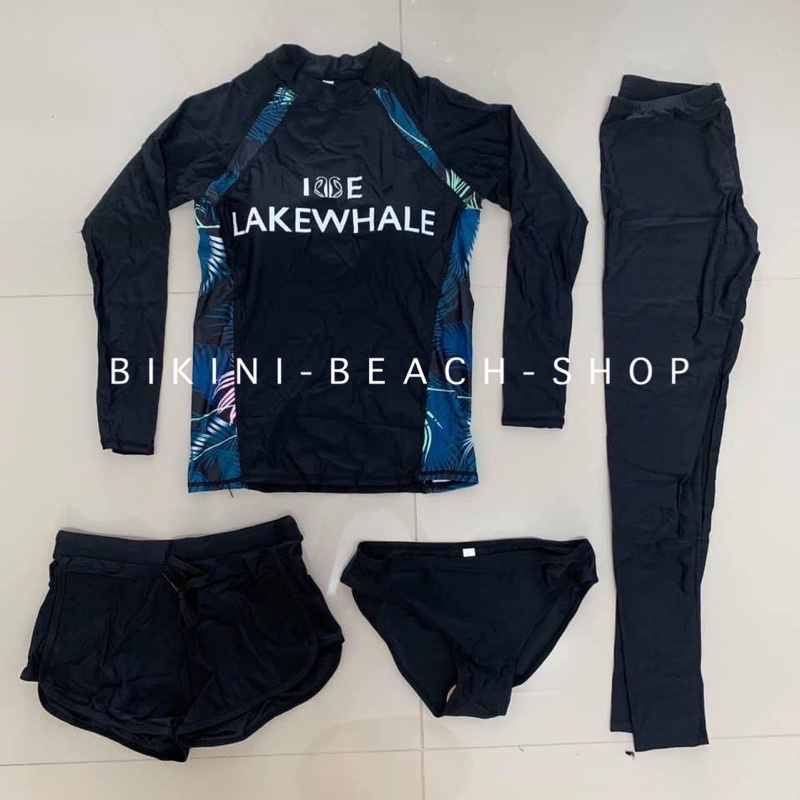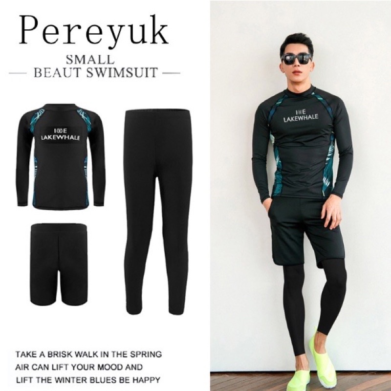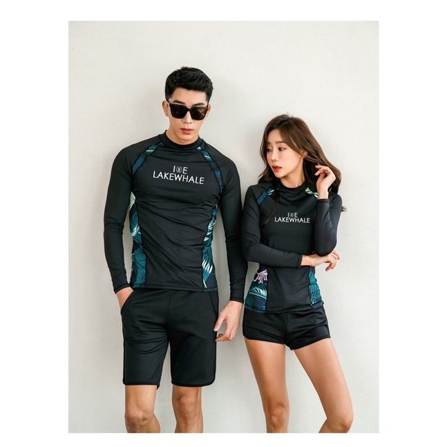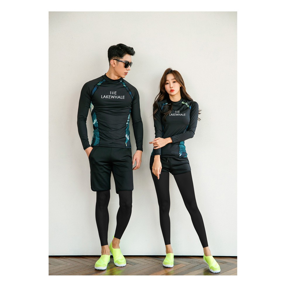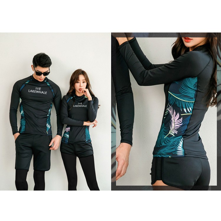 พร้อมส่ง|ส่งไว`🧸⛱{M-3XL}ชุดว่ายน้ำคู่รัก แขนยาวขายาว(ญ.4/ช.3ชิ้น)ลายใบไม้🌤กันUV