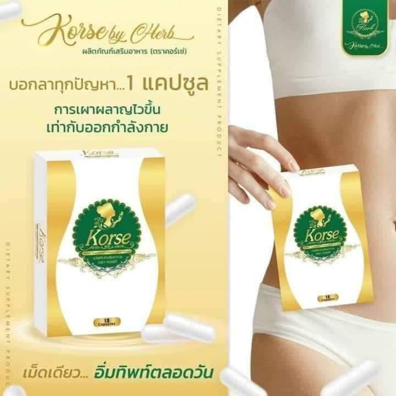 พร้อมส่ง📌Korse ผลิตภัณฑ์เสริมอาหาร💛🤍มีสติ๊กเกอร์กันปลอม📌หุ่นสวยได้ 1กล่อง/15แคปซูล