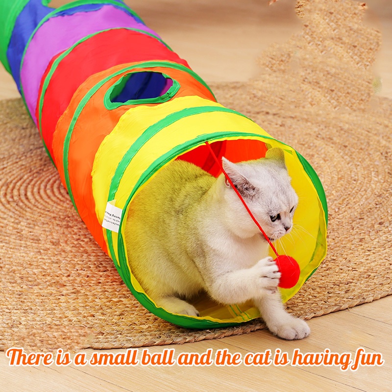 พร้อมส่ง😻อุโมงค์แมว อุโมงค์สายรุ้ง ของเล่นแมว พับได้ ช่องยาว ของเล่นสัตว์เลี้ยง
