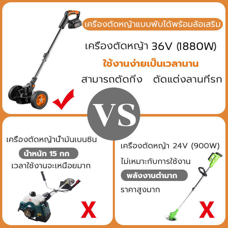พร้อมส่ง🥇VONEUL เครื่องตัดหญ้ หนัก1.8KG 20000 mAh 1880W รถตัดหญ้า