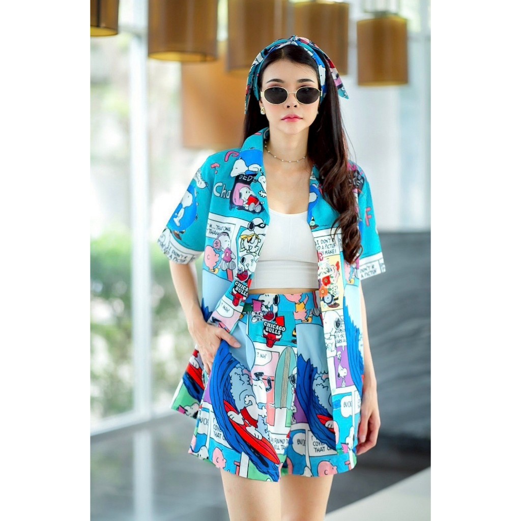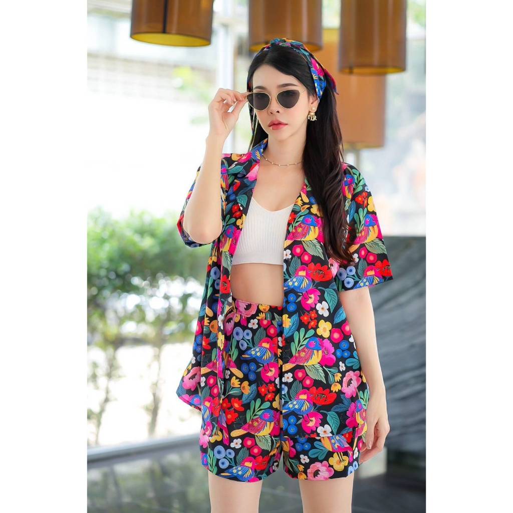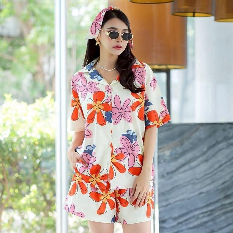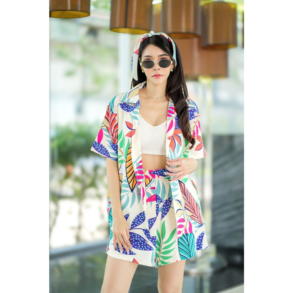พร้อมส่ง ชุดเซ็ตขาสั้นอก44 สีสัน สดใส เหมาะแก่การไปเที่ยวทะเล ชีวิตประจำวัน สบายๆ
