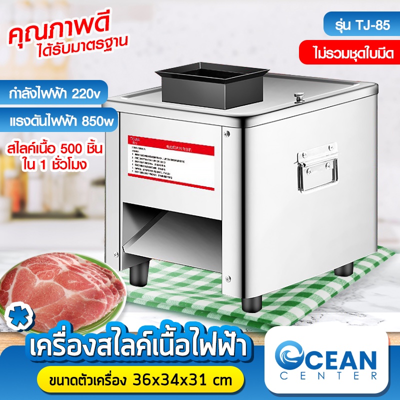 พร้อมส่ง เครื่องหั่นสไลด์หมูไฟฟ้าพร้อมใบมีด ขนาด2.5/3.5/5/7/10/15 รุ่น TJ-85 850W oceanbluecenter
