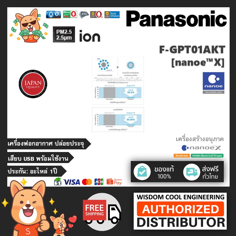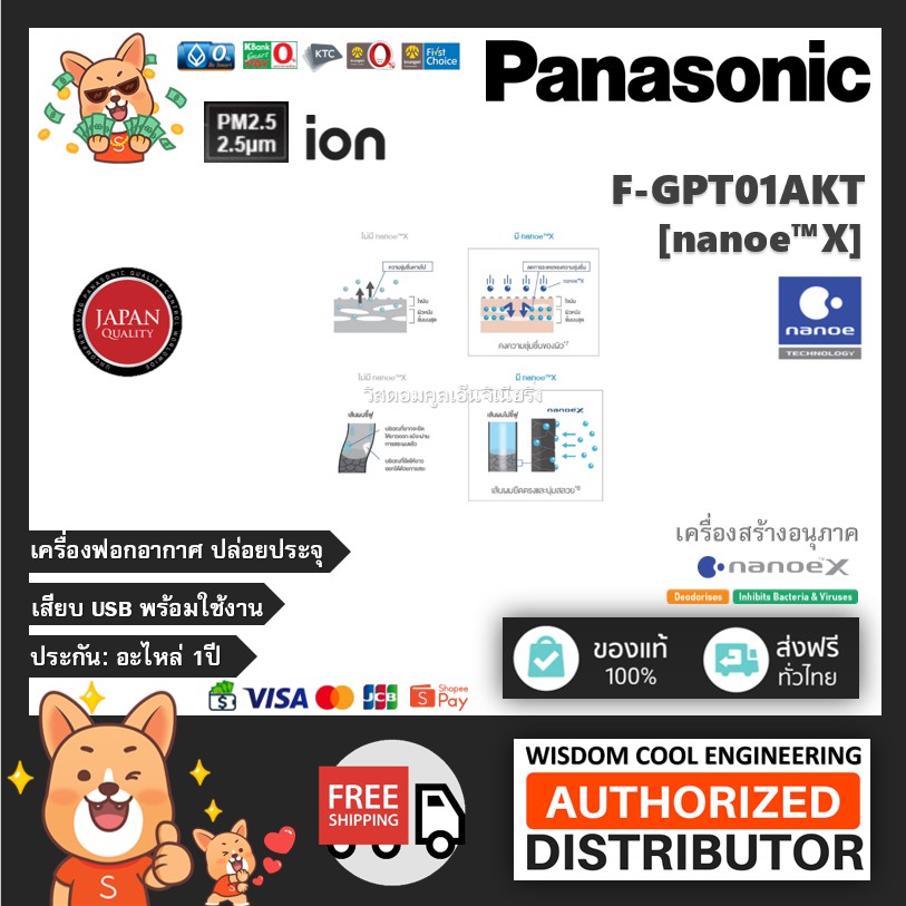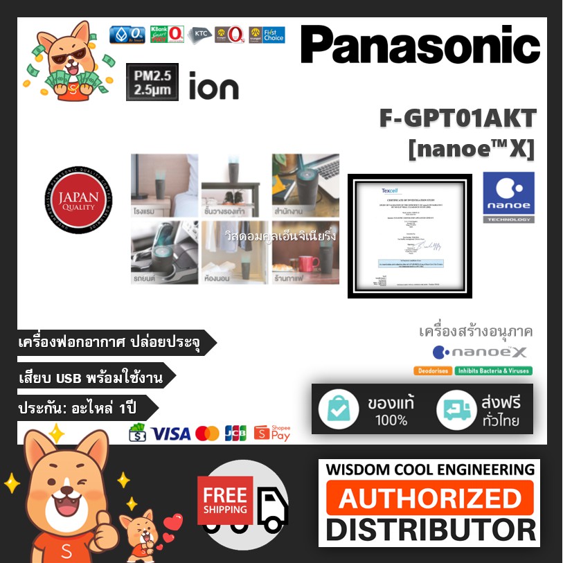 พร้อมส่ง ⭐ Panasonic เครื่องสร้างอนุภาค nanoe™X แก้วฟอกอากาศ รุ่น F-GPT01AKT (Black-สีดำ) ยับยั้งไวรัสCOVID-19