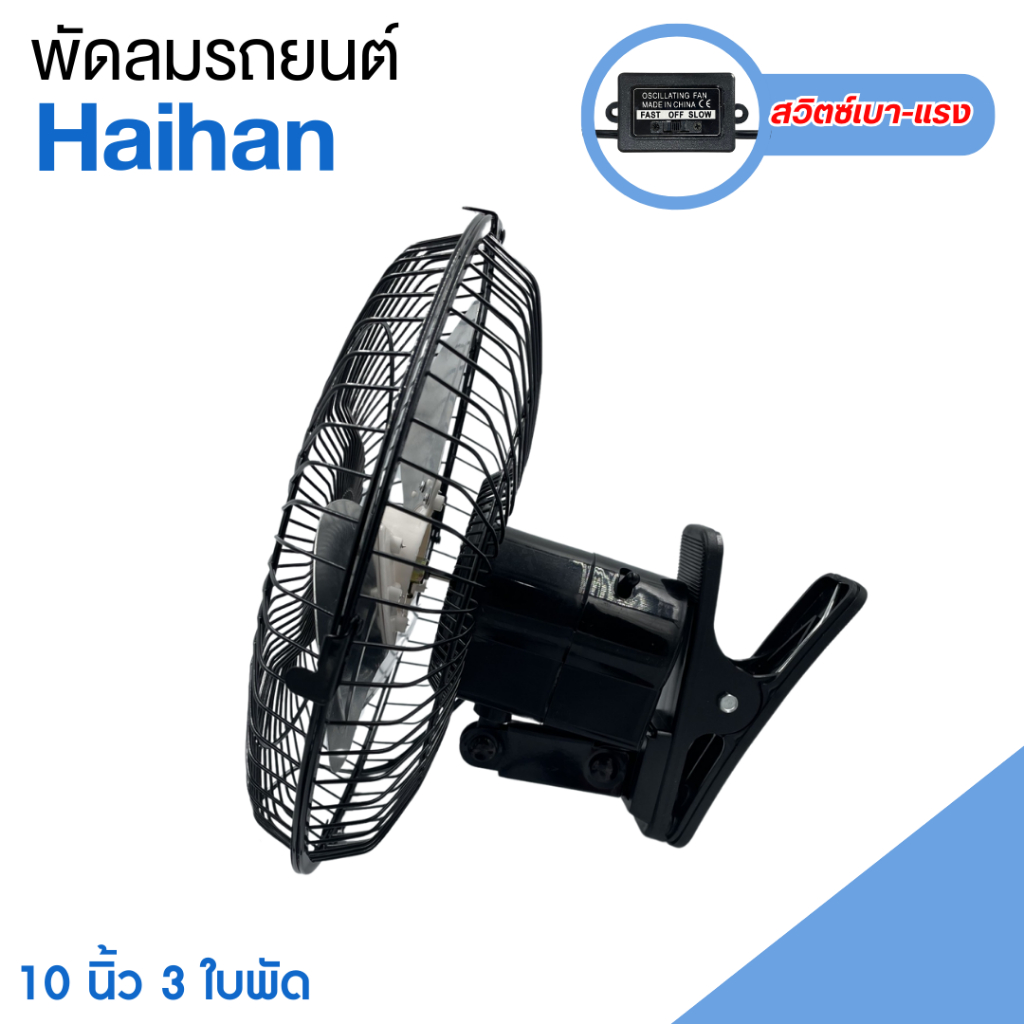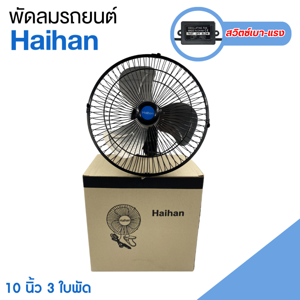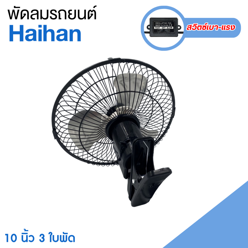 พัดติดรถยนต์ Haihan 10 นิ้ว 3 ใบพัด ไฟรถ DC- 12V/24V พัดลมติดรถยนต์