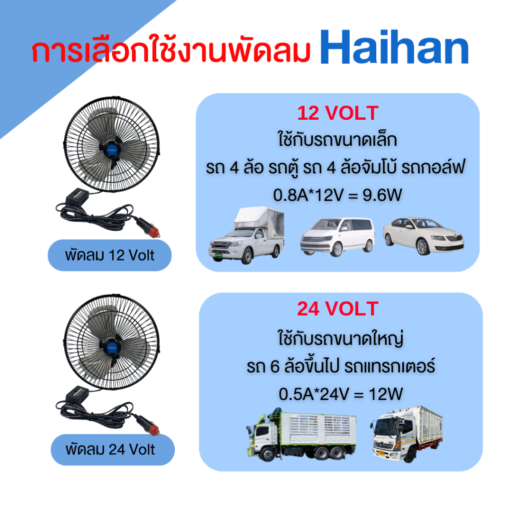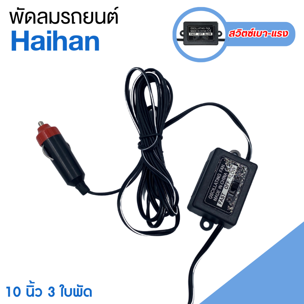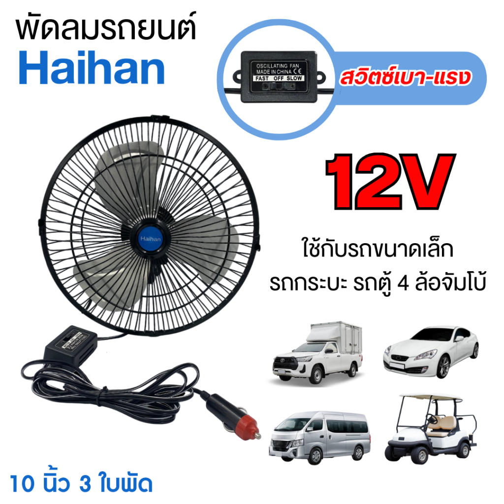 พัดติดรถยนต์ Haihan 10 นิ้ว 3 ใบพัด ไฟรถ DC- 12V/24V พัดลมติดรถยนต์
