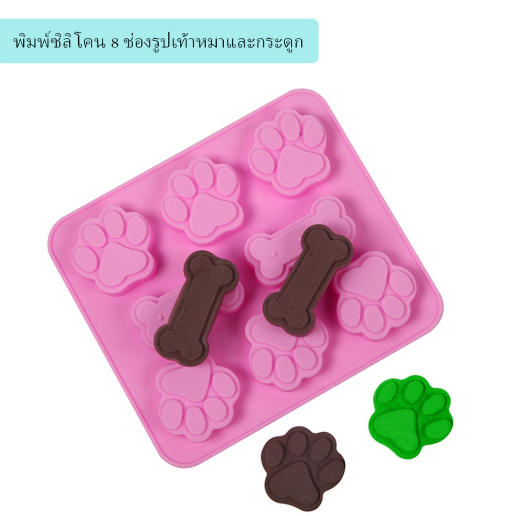 พิมพ์ซิลิโคน 8 ช่องรูปเท้าหมาและกระดูก (คละสี)