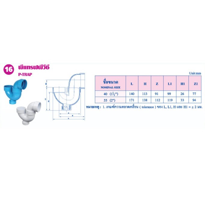 พีแทรฟพีวีซี (P-Trap) ท่อน้ำไทย 1-1/2" , 2"