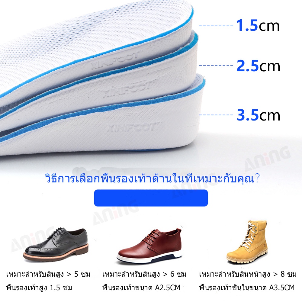พื้นรองเท้ารองรับส่วนโค้งที่มองไม่เห็นระบายอากาศได้พื้นรองเท้าส้นยก 1.5 / 2.5 / 3.5 ซม.