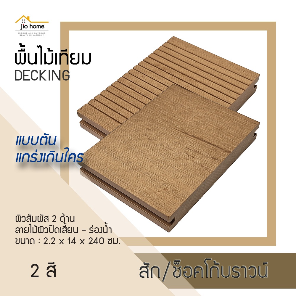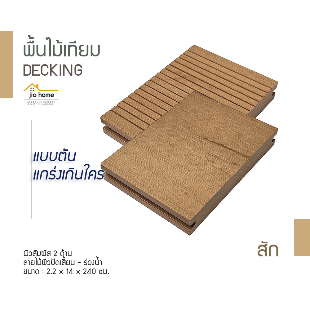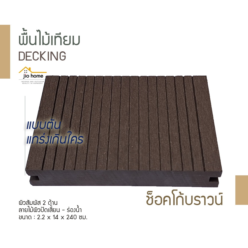พื้นไม้เทียม แบบตัน WPC DECKING DEPA-704 ผิวสัมผัส 2 ด้าน ลายไม้ผิวปัดเสี้ยน-ร่องน้ำ 2.2x14x240 ซม. JioHome