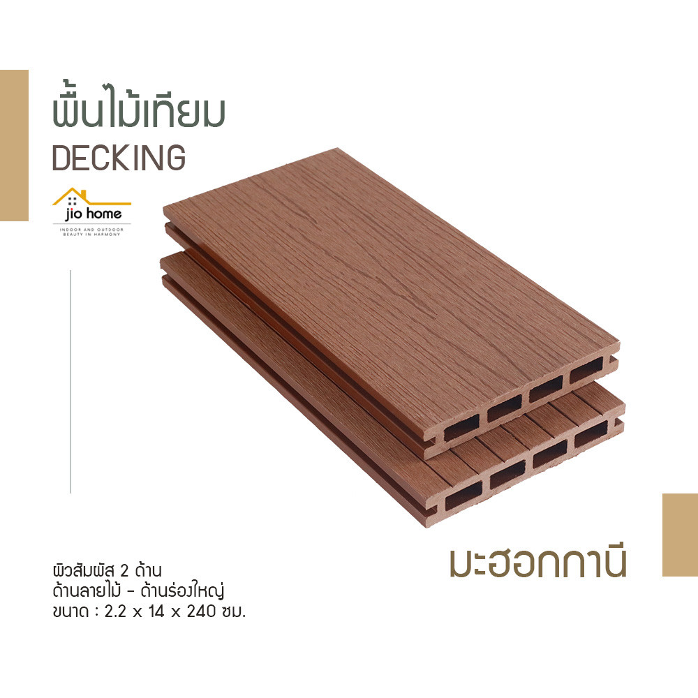 พื้นไม้เทียม WPC DECKING DEP-4Q ผิวสัมผัส 2 ด้าน ลายไม้ผิวปัดเสี้ยน-ร่องน้ำ 2.2x14x240 ซม. JioHome