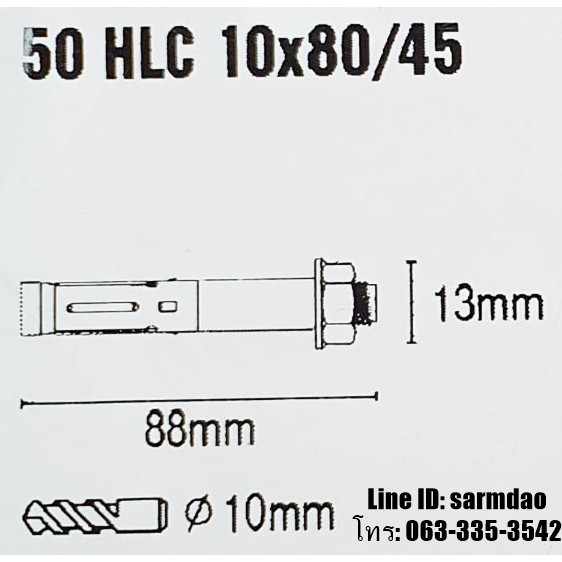 พุกเบอร์10 Hilti 10x80/45 13mm ยาว88mm. พุกกันสาด