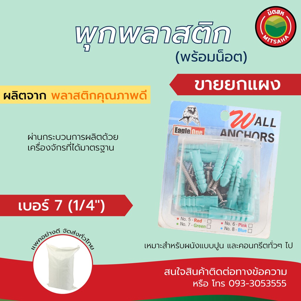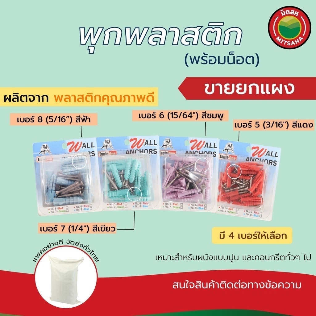 พุก ปุ๊ก พลาสติก พร้อมน็อต เบอร์5,6,7,8 ขายยกแผง(10-20ตัว) PlasticplugWithMetalScrewSellinPack พุ๊ก ปุ็ก พุ็ก มิตสห