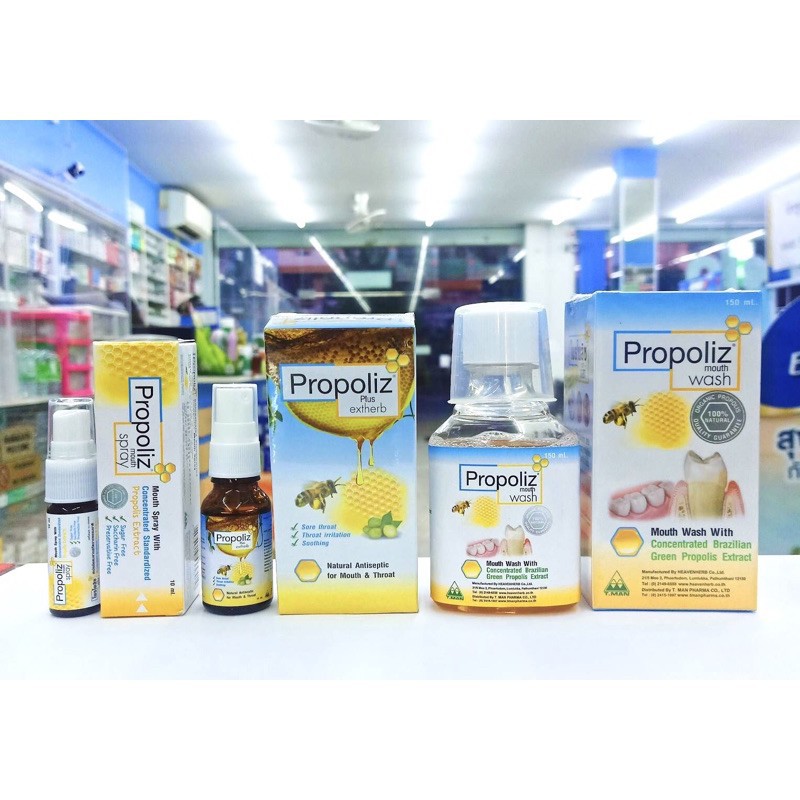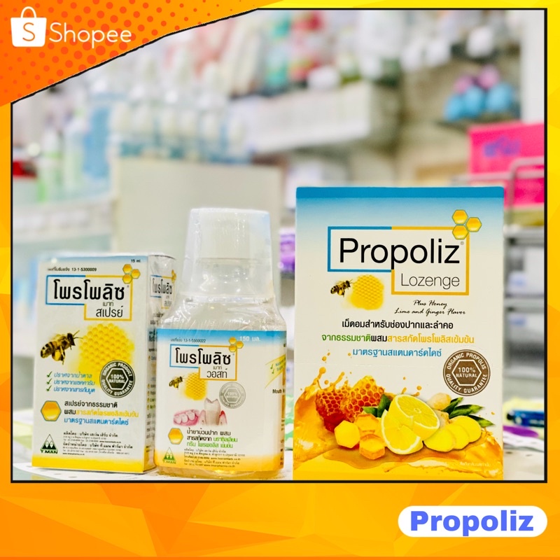 พ่นคอ/บ้วนปาก/เม็ดอม Propoliz spray 15ml/lozenge/mouth wash 150ml โพรโพลิซ สเปรย์15มล./บ้วนปาก 150มล/เม็ดอม