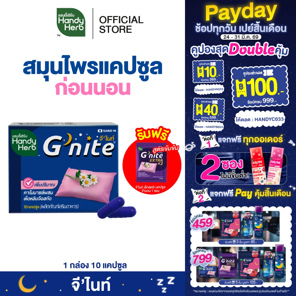 ฟรี! จี'ไนท์ เอ็กซ์ตร้า แคปซูล 1 ซอง HandyHerb G'nite Capsule จี'ไนท์ แคปซูล สมุนไพรก่อนนอน ชนิดแผง