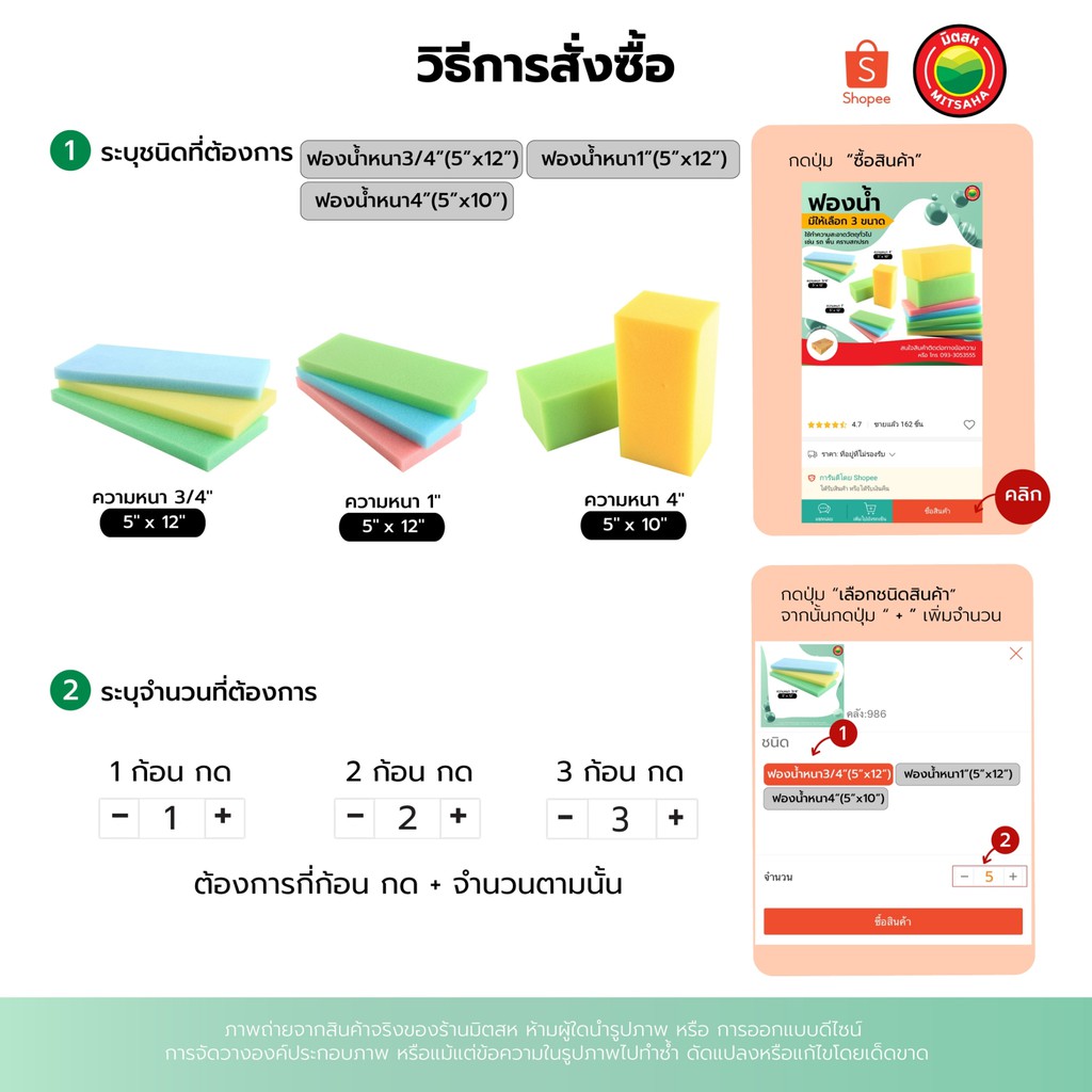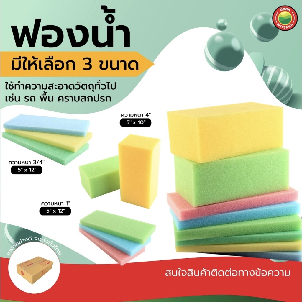 ฟองน้ำ หนา 3/4"นิ้ว, 1"นิ้ว, 4"นิ้ว WASH SPONGE โฟม ฟอง น้ำ เช็ด ถู กระจก ล้าง รถ ฉาบ ปูน ปลูก ผัก ดูด ซับ น้ำ มิตสห