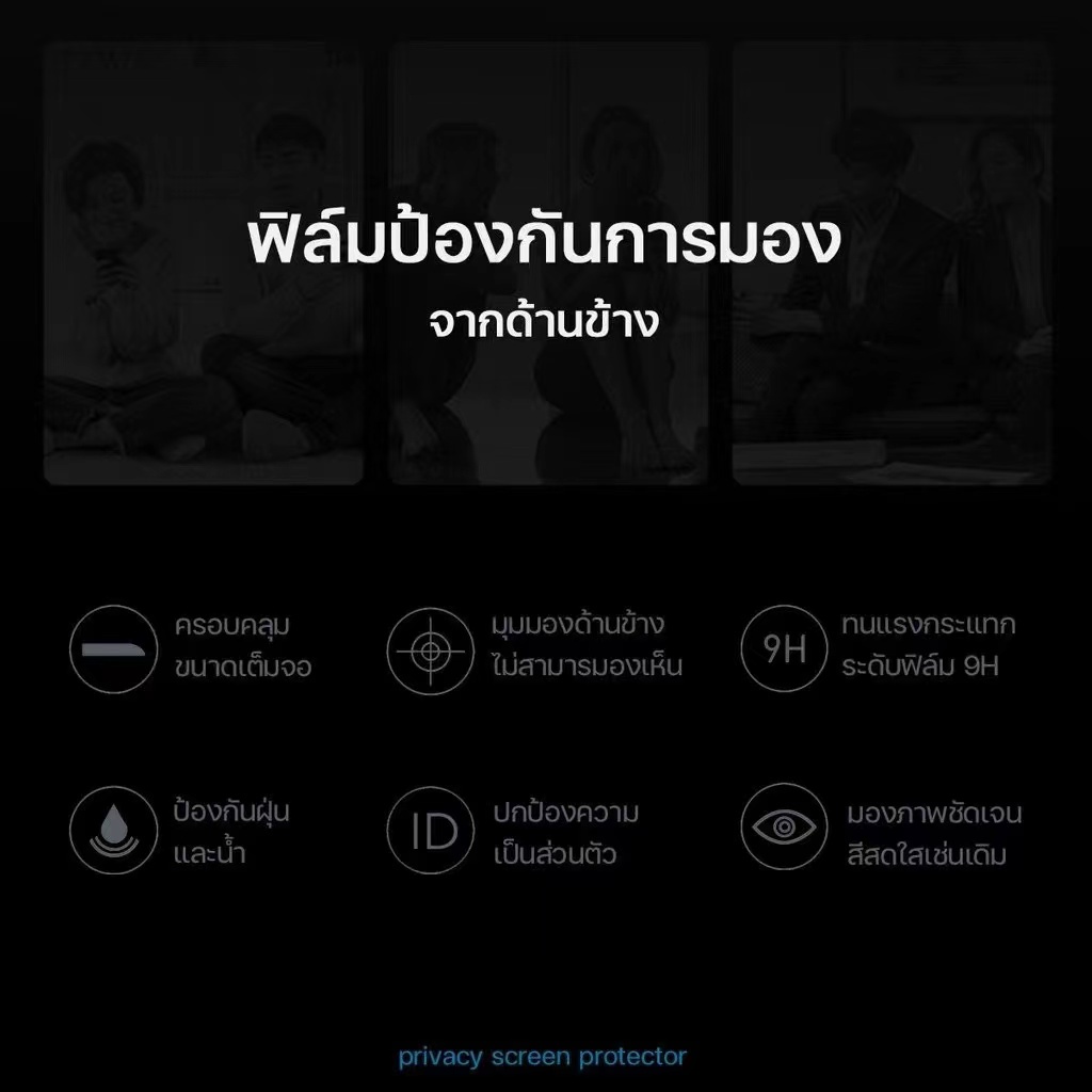 ฟิล์มกระจก ฟิล์มกันมองกันเสือก เต็มจอแบบ สำหรับ iphone 15 14 13 12 11 Pro,ProMax 6,7,8,7Plus XS ป้องกันหน้าจอความเป็นส่ว