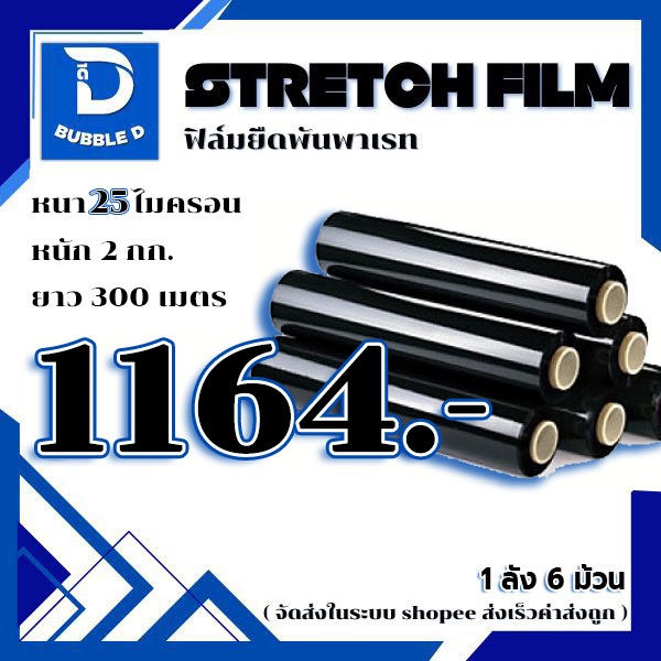 ฟิล์มยืดพันพาเลท สีดำ กว้าง 50 ซม. ยาว 300 ม. หนา 25 ไมครอน ( 1 ลัง ) จัดส่งในระบบช้อปปี้ส่งเร็วส่งถูก $