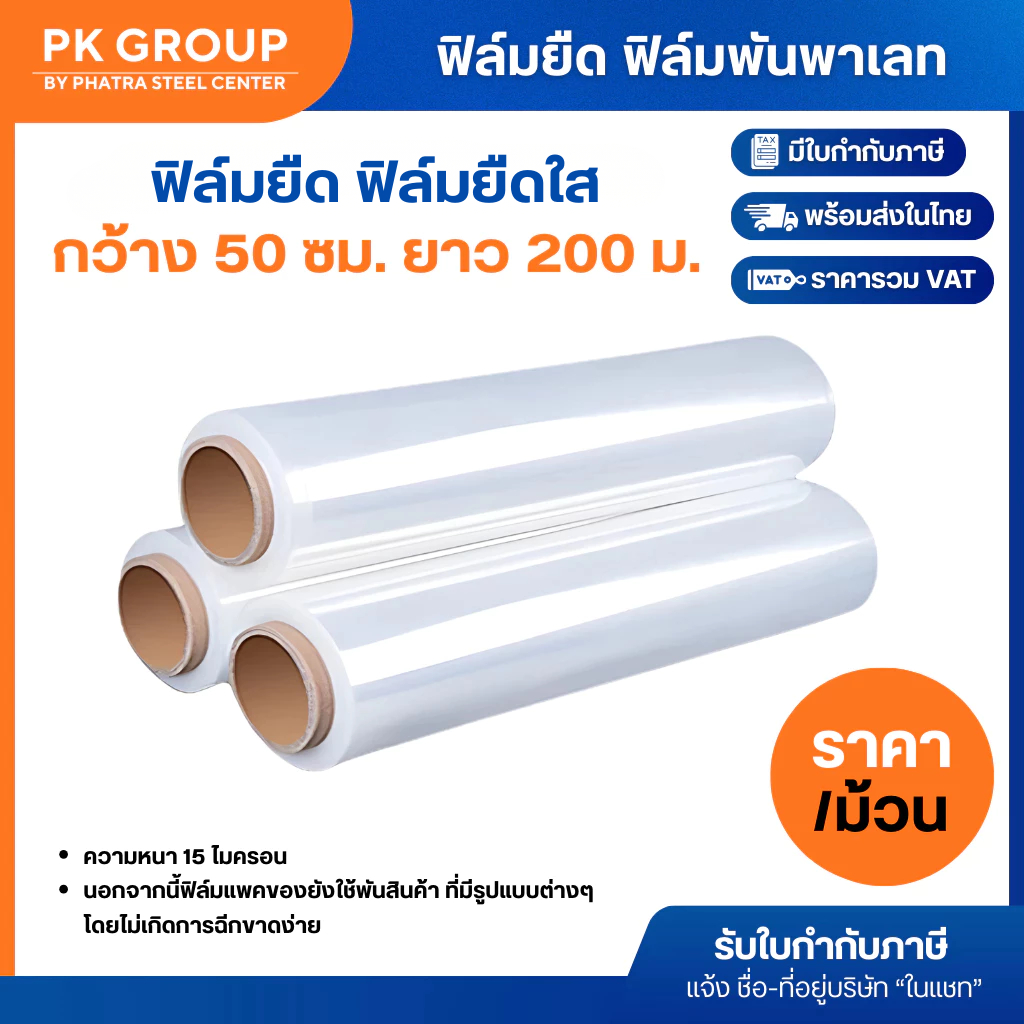 พลาสติกพันพาเลท ฟิล์มยืดใส 50 cm.x 1.3 กก. ประมาณ 155 เมตร (1 ม้วน)