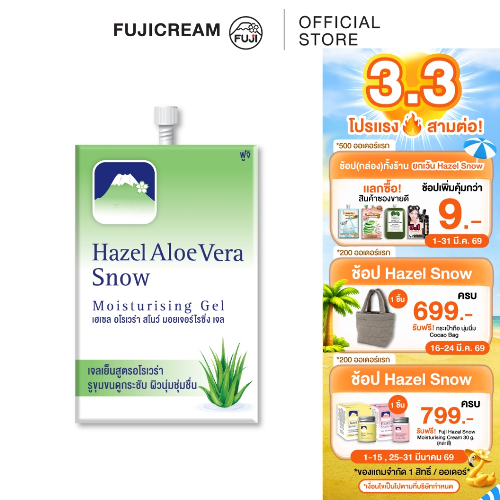 ครีมภูเขาซอง ฟูจิ เฮเซล อโล สโนว์ มอยเจอร์ไรซิ่ง เจลFUJI HAZEL ALOE SNOW MOISTURISING GEL 8 G.ว่านหางจระเข้