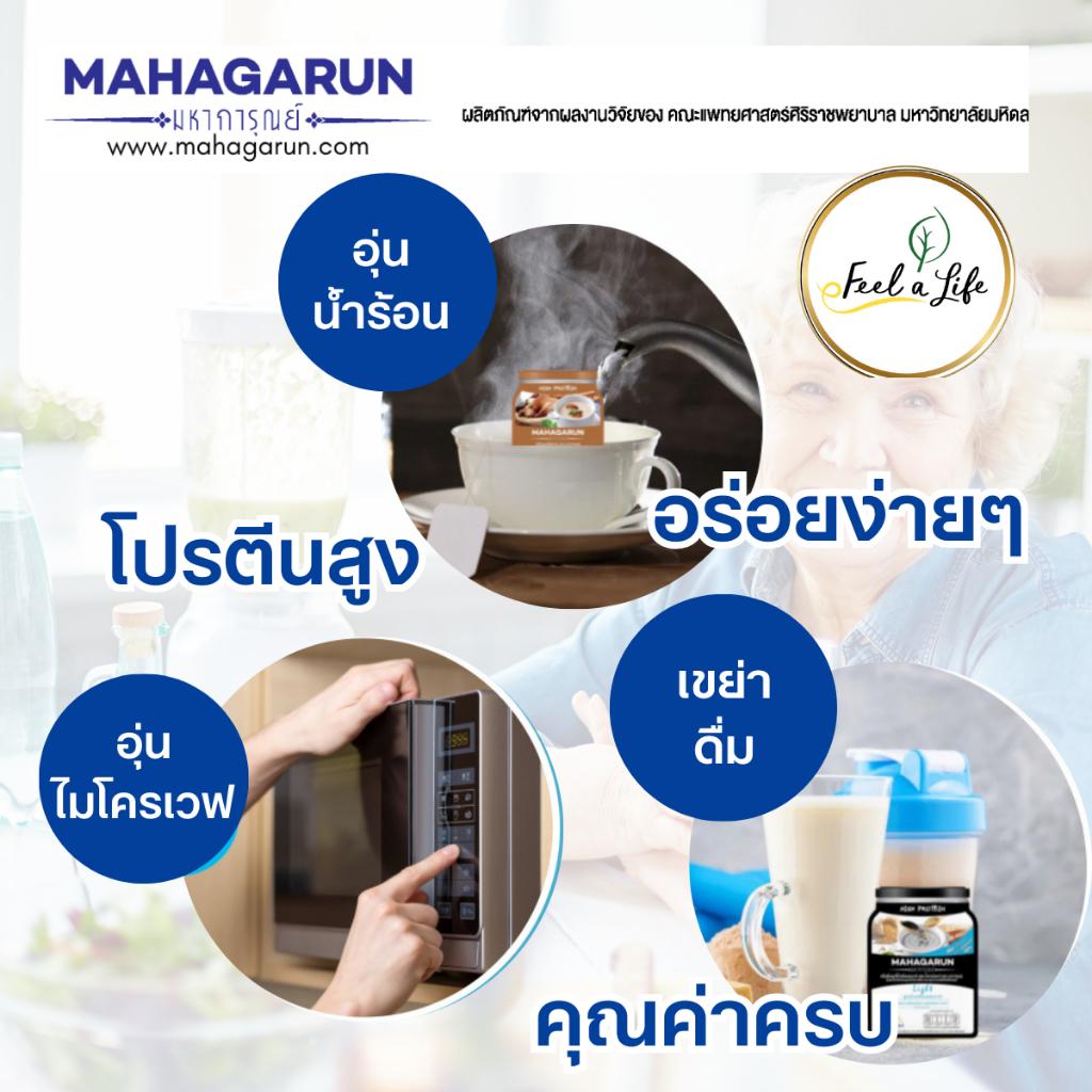 มหาการุณย์ อาหารพร้อมทาน สำหรั บผู้สูงอายุ ผู้ป่วย หรือผู้ที่มีปัญหาการกลืน ชุดประหยัด ชุดละ 12 ซอง