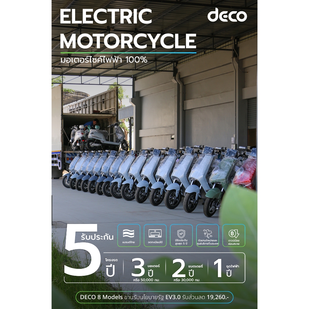 มอเตอร์ไซค์ไฟฟ้า Deco Luciano จดทะเบียนได้ ส่วนลด 19,260 บาท ผ่อน 0% นาน 10 เดือน ดีไซน์ล้ำ