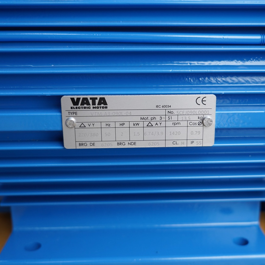 มอเตอร์ไฟฟ้า VATA ขนาด 2 แรงม้า รุ่น VTM 2HP 4P ไฟฟ้า 3 เฟส 380V แกนเพลา 24 มม. มีของพร้อมส่ง