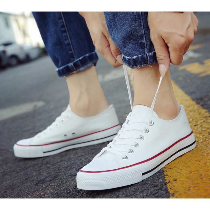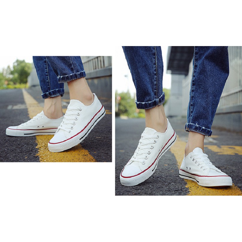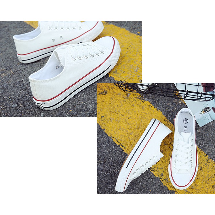 มาครบไซส์!!37- 43รองเท้าผ้าใบแฟชั่นสีขาวแถบแดง