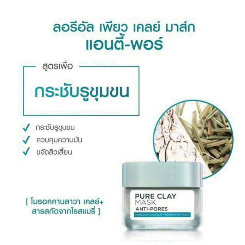 มาสก์โคน ลดสิว ลดผิวมัน L'OREAL PARIS Pure Clay Mask Anti-Pores 50 g. MFG 2018