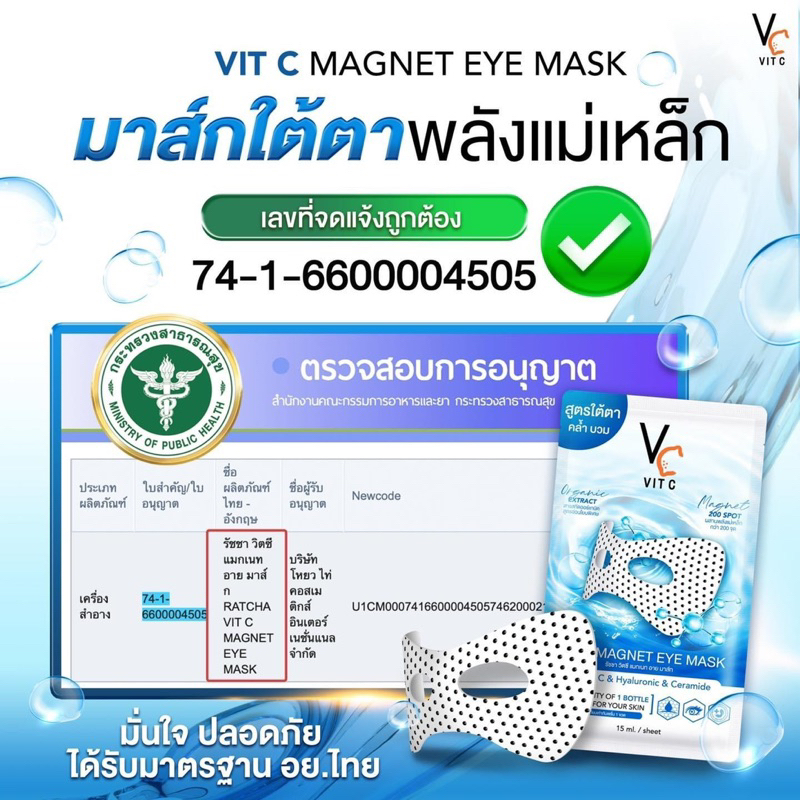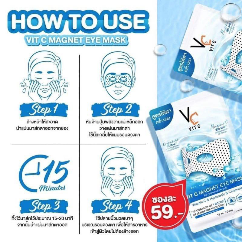 มาส์กใต้ตาพลังแม่เหล็ก Vit C Magnet Eye Mask มาส์กใต้ตาน้องฉัตร(ราคาต่อซอง)