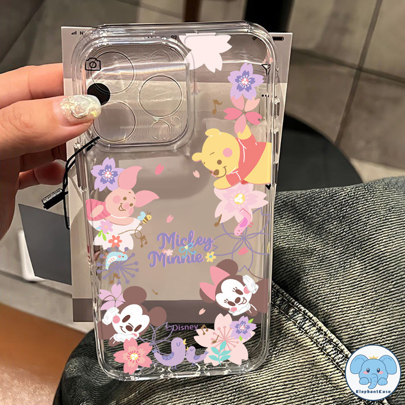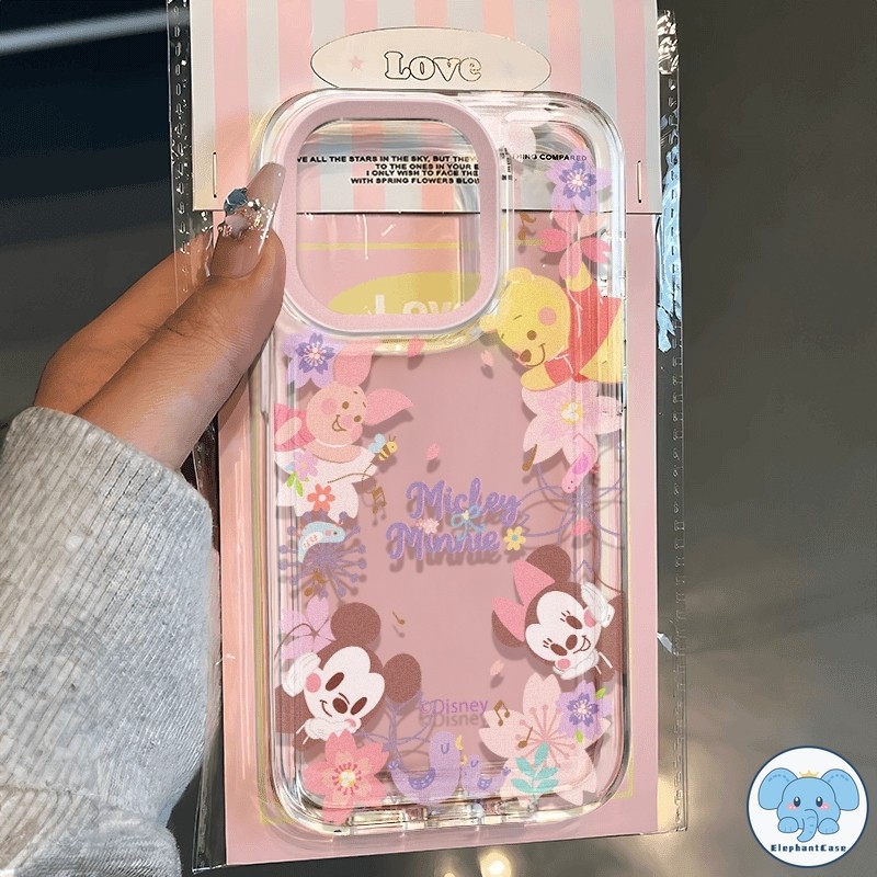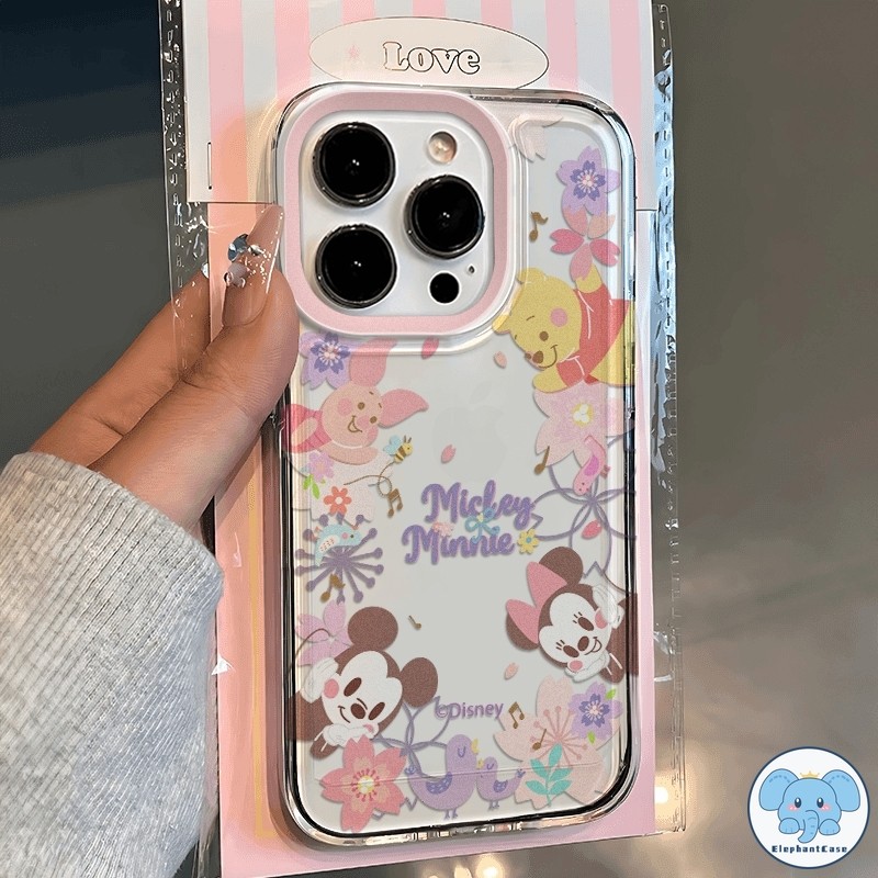 มิกกี้เมาส์น่ารักเข้ากันได้เคสไอโฟน 11 16 13 XR 15 Pro Max 12 14 Pro Max 7Plus X XS Max 7 14 15 8 Plus SE ดอกไม้หวานเคส