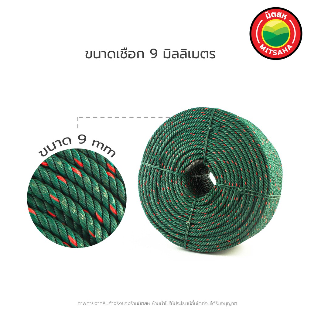 มิตสห เชือกไนล่อน ยาวเริ่มต้น10เมตร ขนาด9มิล ยาวเลือกได้ แบ่งขายยาวทุก10เมตร NylonRope เชือกเขียว ไนล่อนเขียว ในล่อน