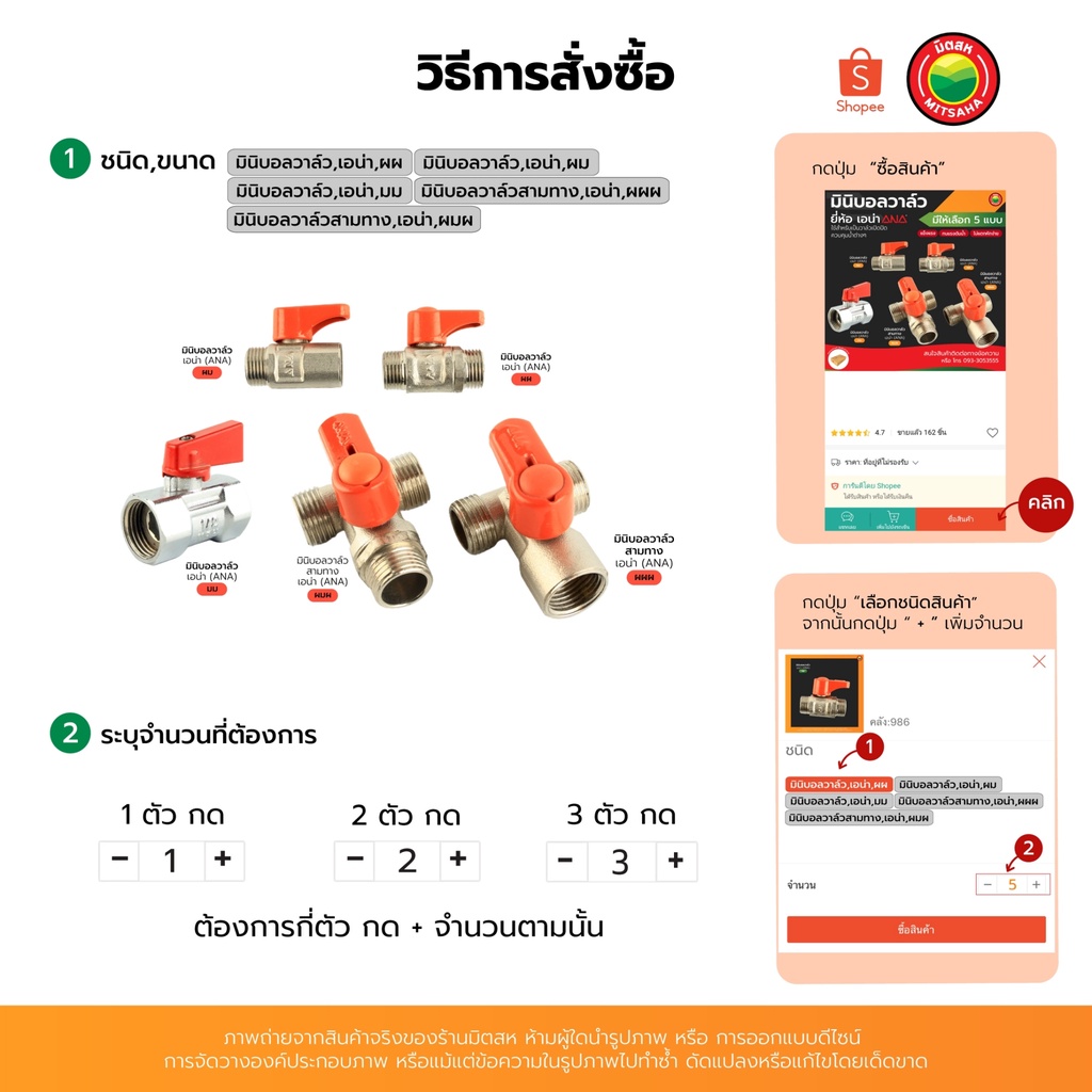 มินิบอลวาล์ว 2 ทาง 3 ทาง เอน่า 1/2 นิ้ว (4 หุน) สแตนเลส ผผ. ผม. มม. ผผผ. ผมผ. MINI BALL VALVE บอลวาล์ว เกลียวนอกใน มิตสห