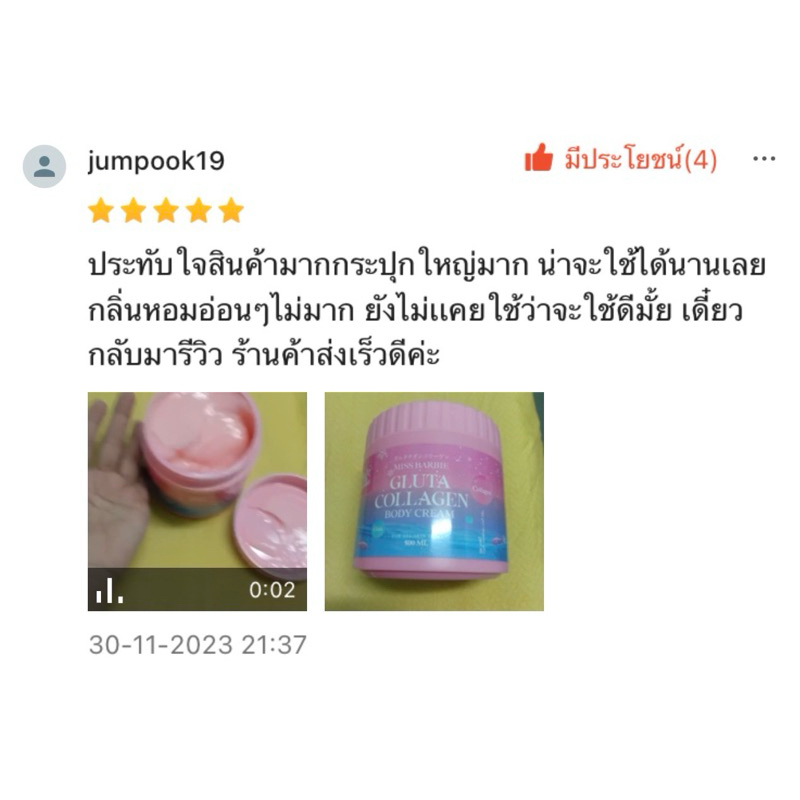 <ขายดี>ครีมทาผิว มิสบาร์บี้(ชมพู)กลูต้าคอลลาเจนบอดี้ครีม *500g.* กระปุกใหญ่ สุดคุ้ม!! ผิวกระจ่างใส เนียนนุ่ม