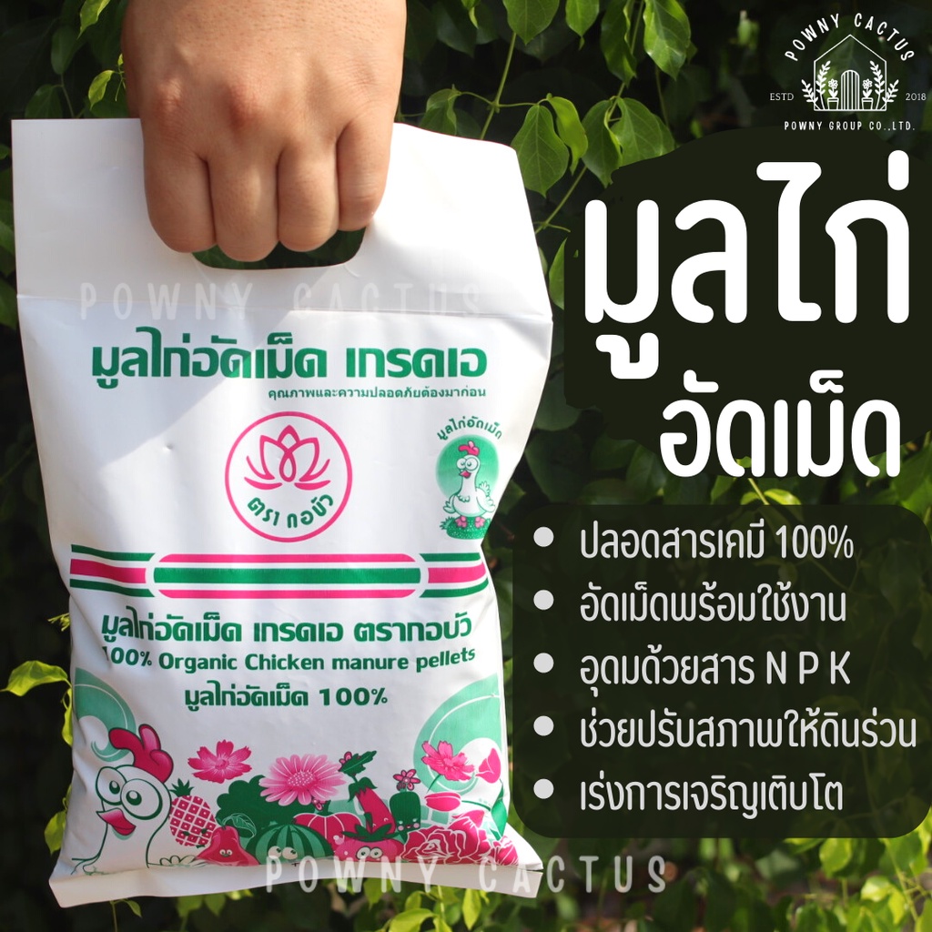มูลไก่อัดเม็ด 100% ปุ๋ยขี้ไก่ อัดเม็ด ตรากอบัว 1 กิโล ปุ๋ยอินทรีย์อัดเม็ด