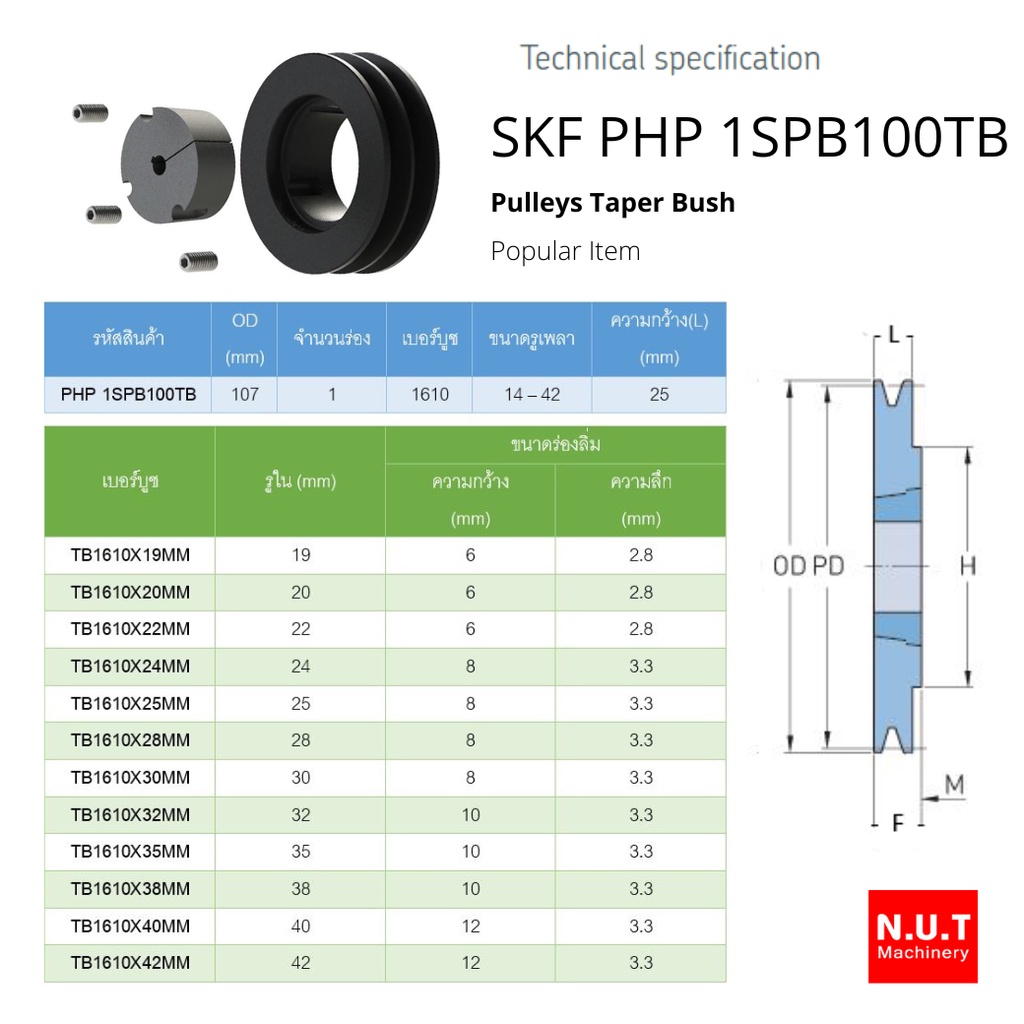 มู่เล่ย์ SKF PHP 1SPB100TB (4”) ใช้กับเตเปอร์บูชเบอร์ 1610