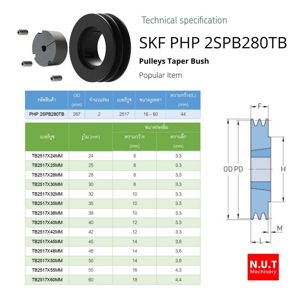 มู่เล่ย์ SKF PHP 2SPB280TB (11”) ใช้กับเตเปอร์บูชเบอร์ 2517