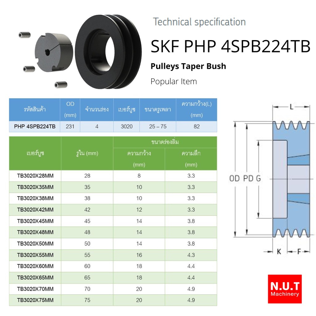 มู่เล่ย์ SKF PHP 4SPB224TB (9") ใช้กับเตเปอร์บูชเบอร์ 3020